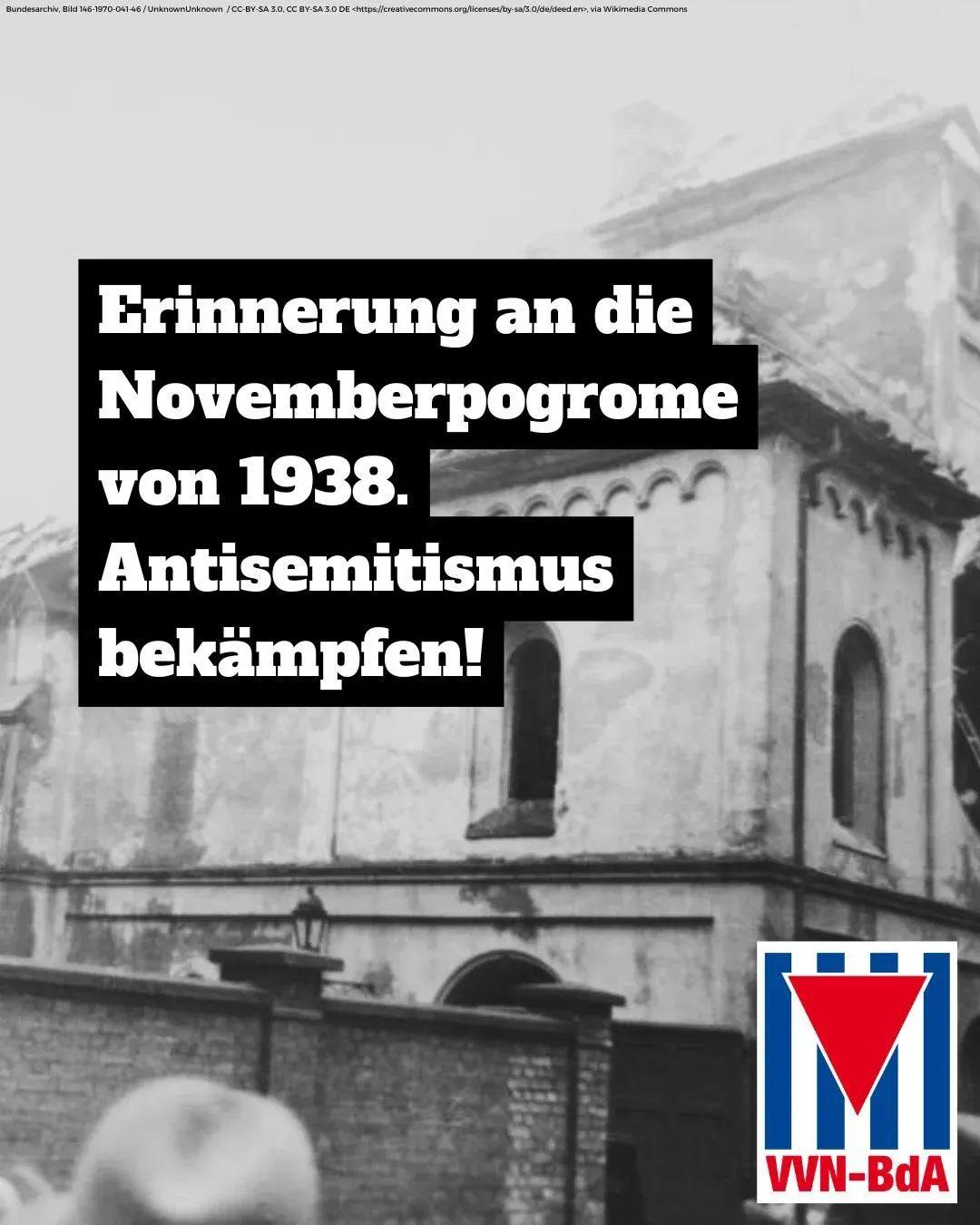 Erinnerung an die Novemberpogrome von 1938. Antisemitismus bekämpfen!