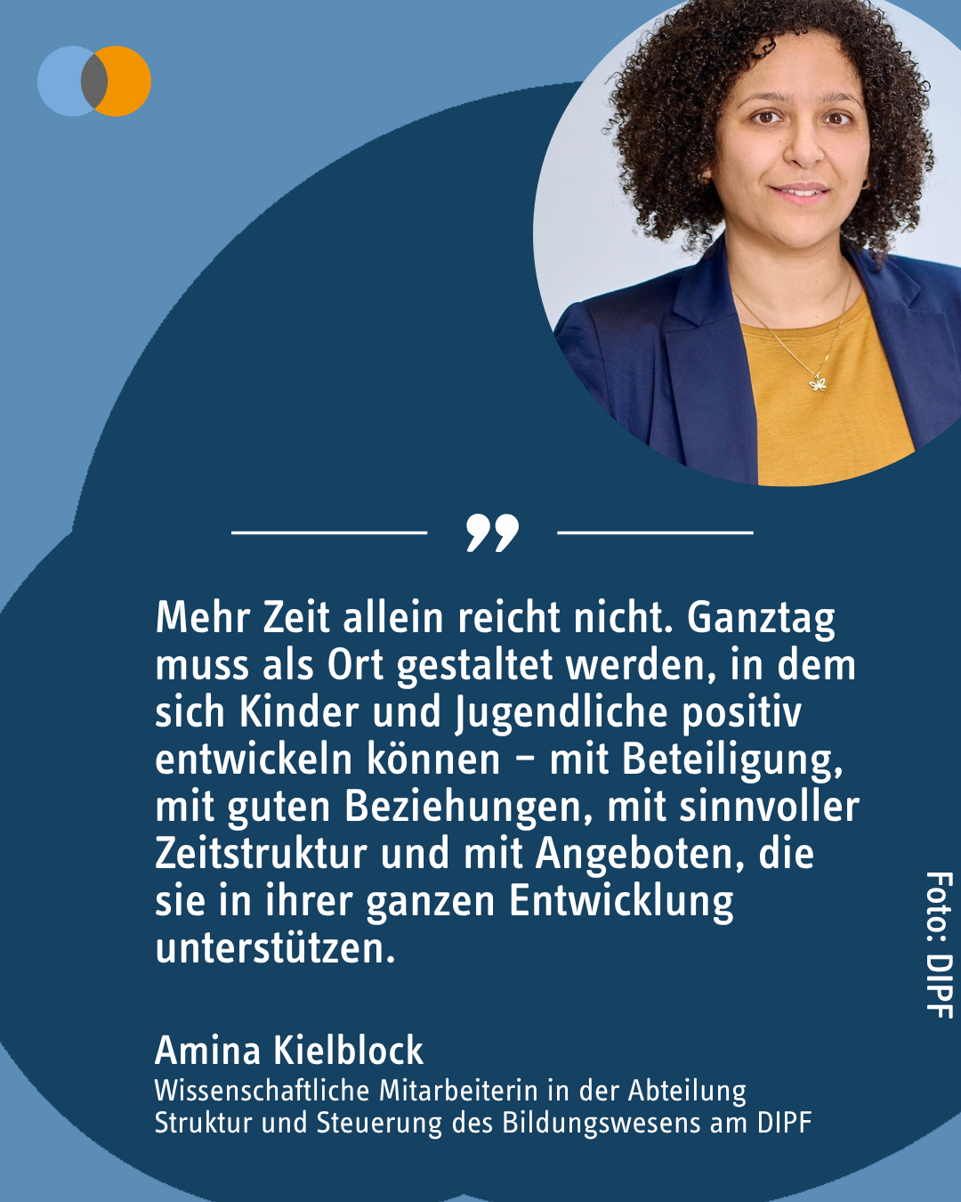 👉 Impuls von DIPF-Wissenschaftlerin Amina Kielblock: https://www.dipf.de/de/dipf-aktuell/mediathek-1/einblicke-und-denkanstoesse/ganztag-weiterdenken-qualitaet-entsteht-nicht-allein-durch-mehr-zeit?mtm_campaign=ganztag&mtm_source=mst&mtm_medium=social%20media&mtm_content=impuls