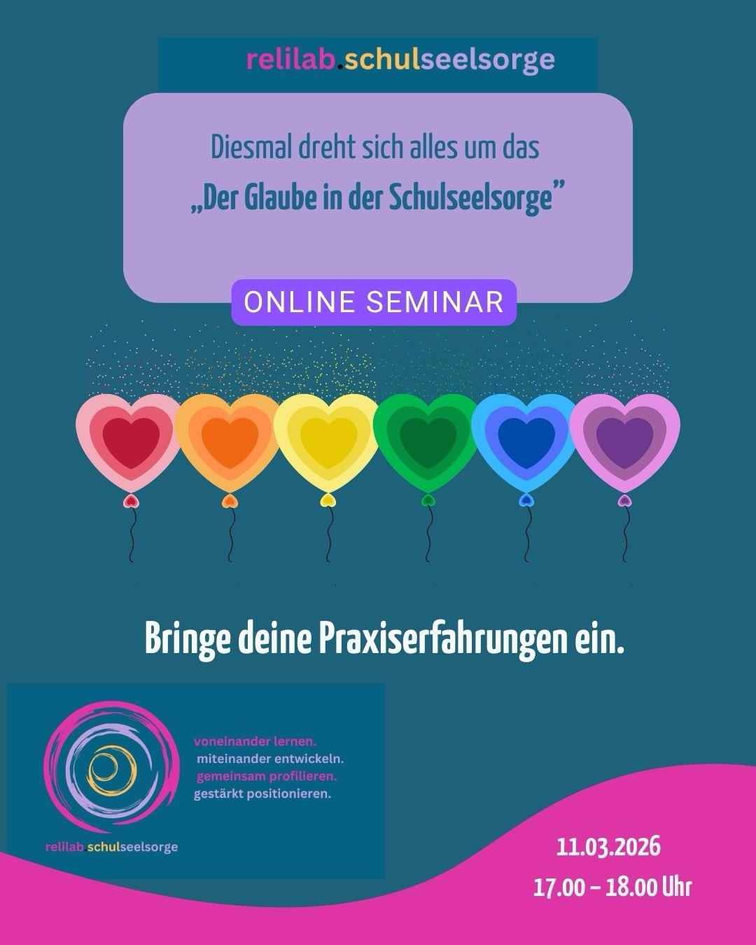 Am 11.03.2026 (Mittwoch!!!) von 17 bis 18 Uhr denken wir im relilab.schulseelsorge nach über das ThemaDer Glaube in der Schulseelsorge Wir freuen uns auf den gemeinsamen Austausch und eure Ideen! […]